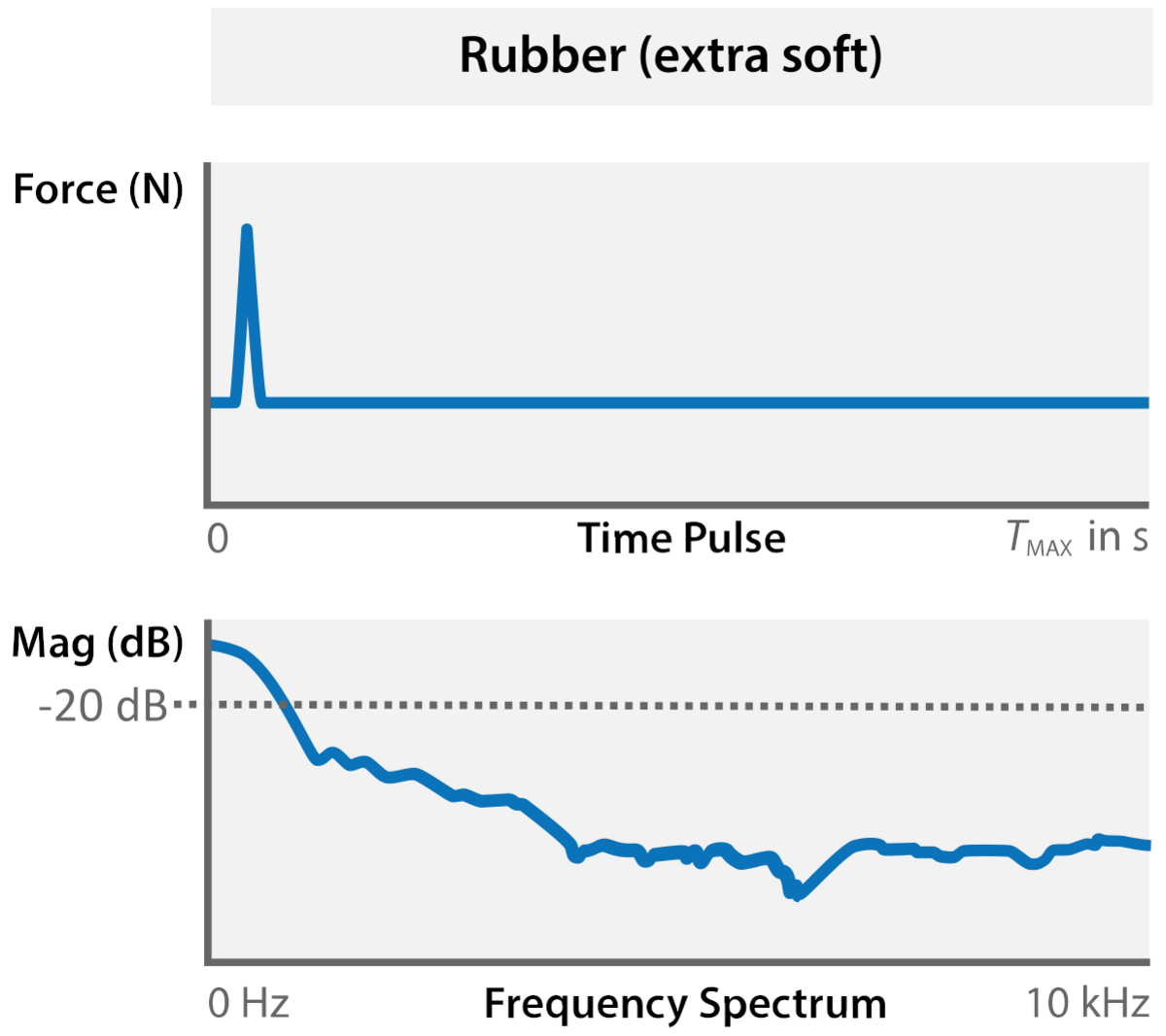 Generally applies: The lighter the hammer and the stiffer the tip, the higher the excited frequency range.